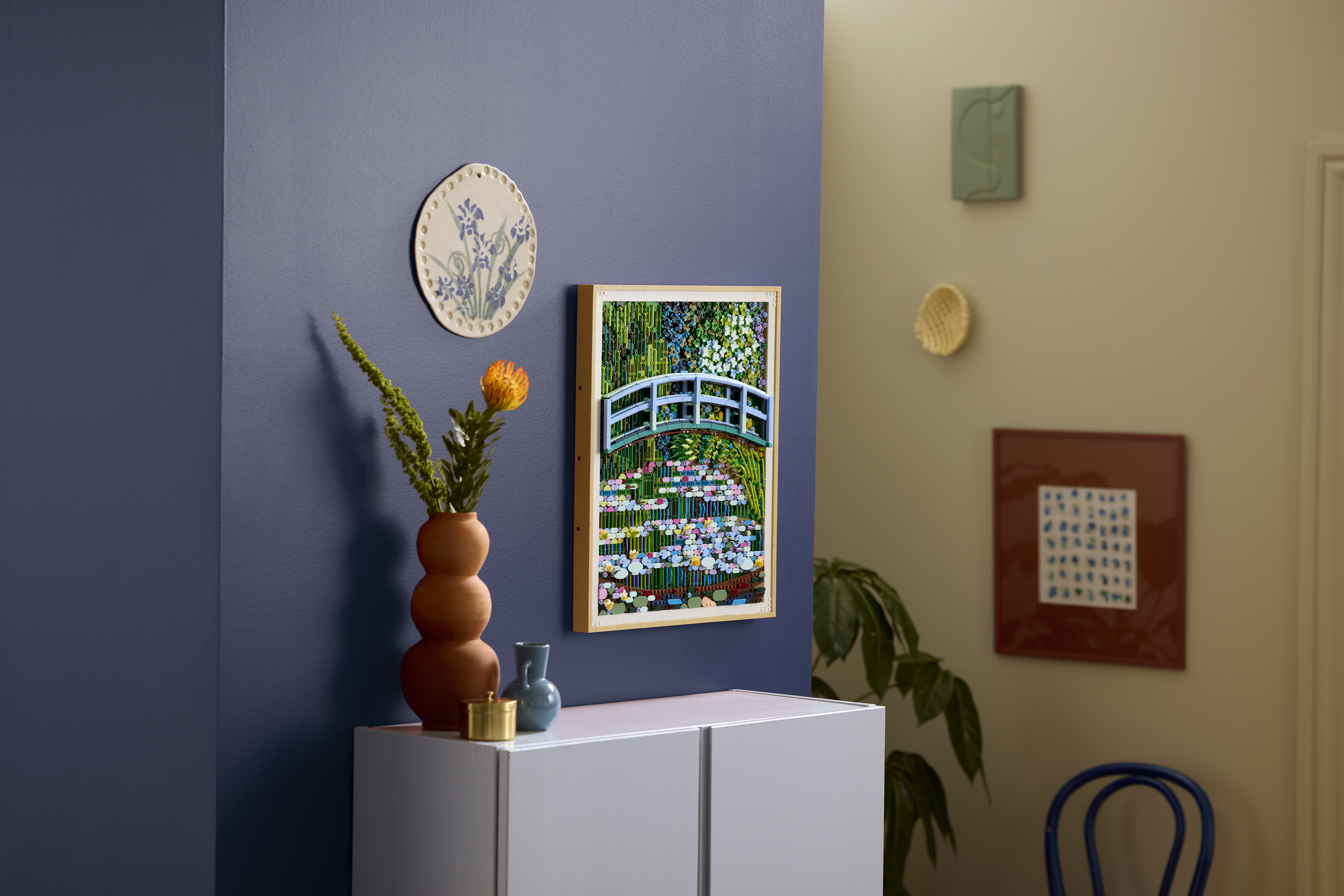 Das 3.179-Elemente LEGO Art Set zollt nicht nur der unverwechselbaren Pinselarbeit von Claude Monet Tribut, sondern verdeutlicht auch seine Liebe zur Natur und wie er die Essenz seines eigenen Gartens in Giverny (Frankreich) einfängt. Das atemberaubende Set bedient sich einer Reihe an LEGO Elementen wie Schmetterlingen, Blumen oder auch Früchten, um Monets Liebe zur natürlichen Fauna widerzuspiegeln. Grüne Bäume, die ikonische Brücke und die bekannten Wasserlilien aus seinem Originalwerk werden so in LEGO Steine übersetzt. Das Resultat ist eine stimmige Interpretation seines Werkes, ergänzt durch einen integrierten Wandhaken zur einfachen Befestigung für zu Hause.