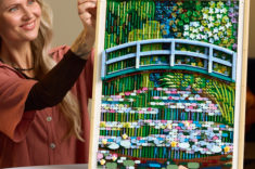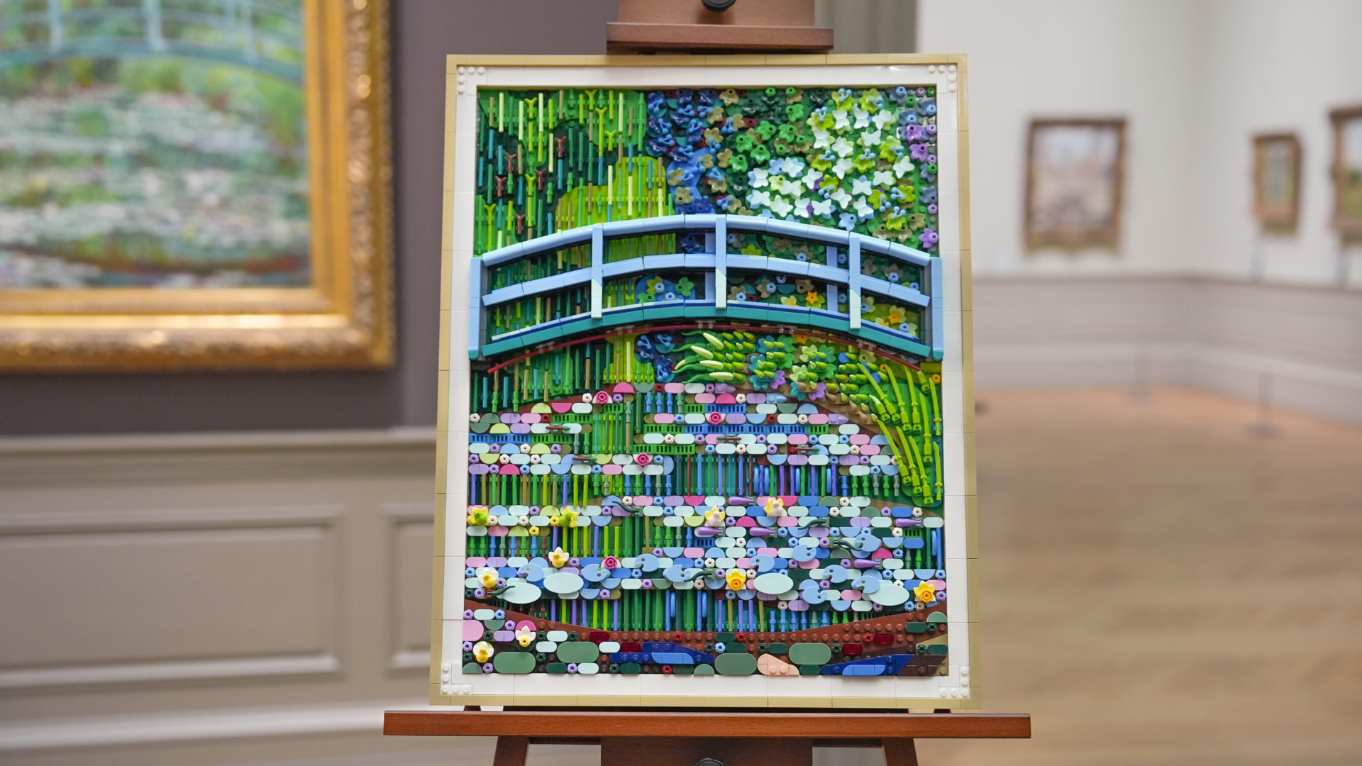 “Monets Pinselführung in die LEGO Welt zu übersetzen, war eine zentrale Herausforderung”, sagt Stijn Oom, LEGO Designer. “Das Team hat akribisch eine haptische 3D Oberfläche kreiert, in dem sie Fliesen und Platten sowohl in vertikaler als auch horizontaler Richtung übereinander gelegt haben. So war es möglich, Monets Pinselarbeit nachzuahmen und sorgfältig seine subtile Farbpalette an die charakteristischen LEGO Farben anzupassen. Um die Feinheiten des Originalwerks mit LEGO Steinen nachzubauen, mussten bestimmte Elemente des Gemäldes abstrahiert werden, während wesentliche Details von Monets Komposition gewahrt wurden, um seinem künstlerischen Stil gerecht zu werden. Abhängig von der Distanz des Betrachtenden wirkt das Bild auf verschiedene Weisen: individuelle Pixel und Texturen werden von Nahem erkennbar, während die impressionistische Landschaft sich mit zunehmendem Abstand entfaltet. Dadurch spiegelt sich auch der Stil aus Monets späteren Werken wider.”