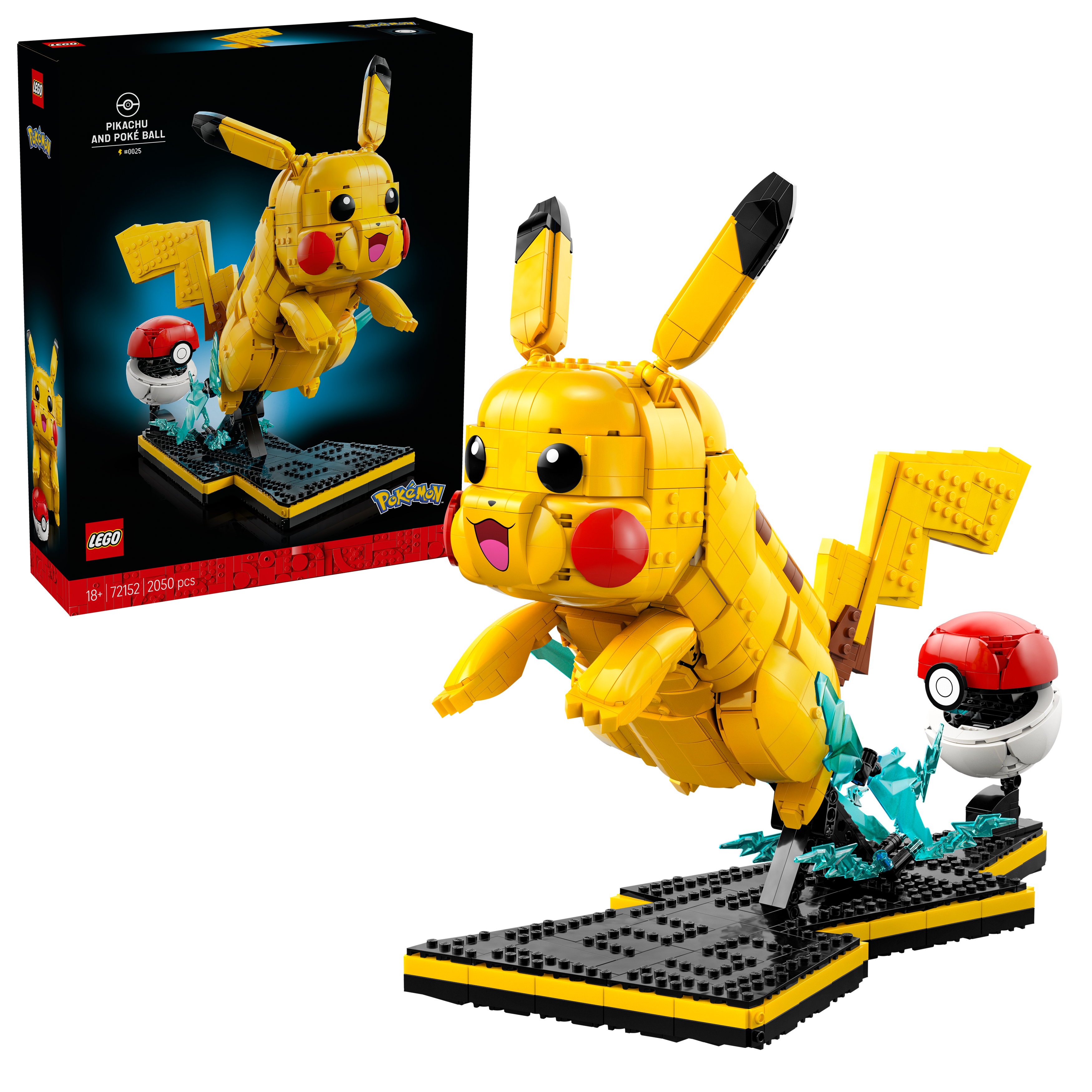 Das Set mit 2.050 Teilen verfügt über eine schwarze, blitzförmige Basis, aus der Blitzenergie austritt, während Pikachu aus dem Pokéball springt und bereit für Action ist. Wichtige versteckte Details beinhalten eine „25“ auf der Basis des Sets, die Pikachus Pokédex-Nummer symbolisiert.